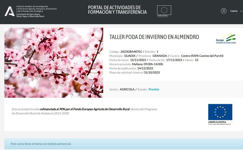 Taller Poda de Invierno en Almendro en Guadix, del 15 al 17 de Noviembre,en el Centro Ifapa Camino de Purchil. Horario de 9:00h a 14:00h.